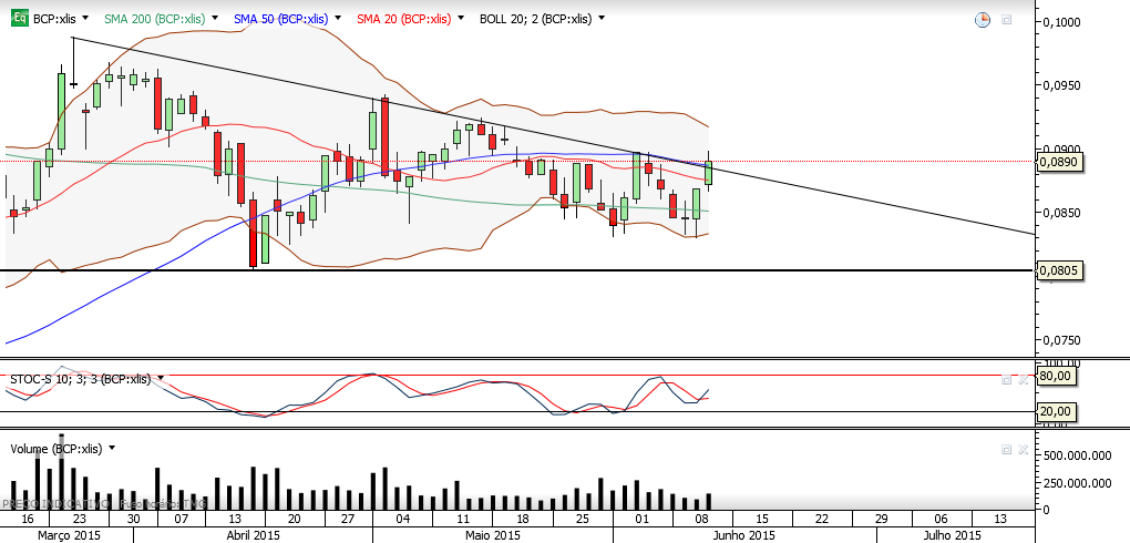 Existem todas as condições (mais rendimento, mais consumo, mais investimento e mais crédito bancário) para a cotação do BCP desfazer a resistência dos 0,090 Euros e vir a ancorar-se em suportes mais elevados.