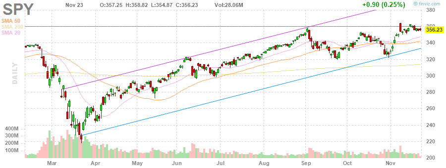 Estou expectante e com algumas reservas de entrar em novas posições. Enquanto o SPY não quebrar de forma consistente esta resistência que se situa nos 360, vou tentar ficar como mero observador. Resta saber se consigo