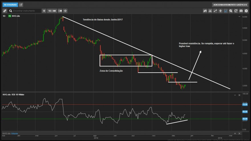 Mais provável até será dizer que o preço da ação da NVGR tem um comportamento contrário ao do preço do papel...