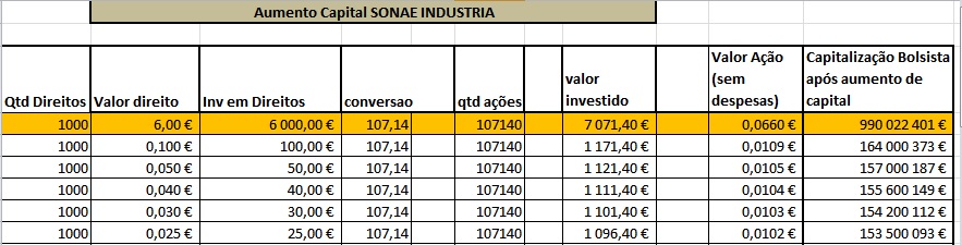 Para o valor da cotação atual o valor de cada direito seria 6€ !