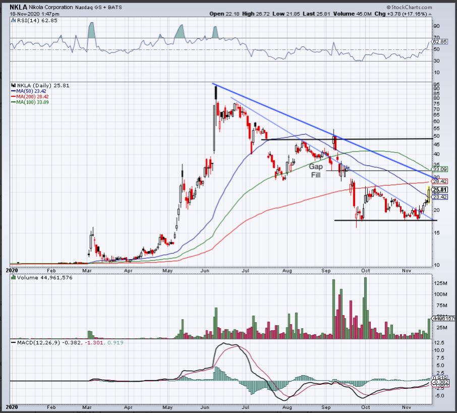 Dois gráficos decentes (NKLA e TSLA). A segunda não necessariamente uma small cap como é costume...