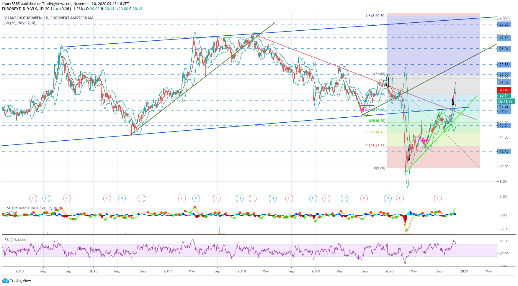 A acçao teve uma recuperaçao muito boa desde março. Aliás, já se encontra a valores pré-crash do covid. Nos utimos dias tem lateralizado entre os 19:80 e 20:40. Tentou quebrar este ultimo valor mas sem sucesso. Penso q assim q o RSI esfriar poderá atacar os 22.50 euros e fechar o gap de Dezembro 2019.