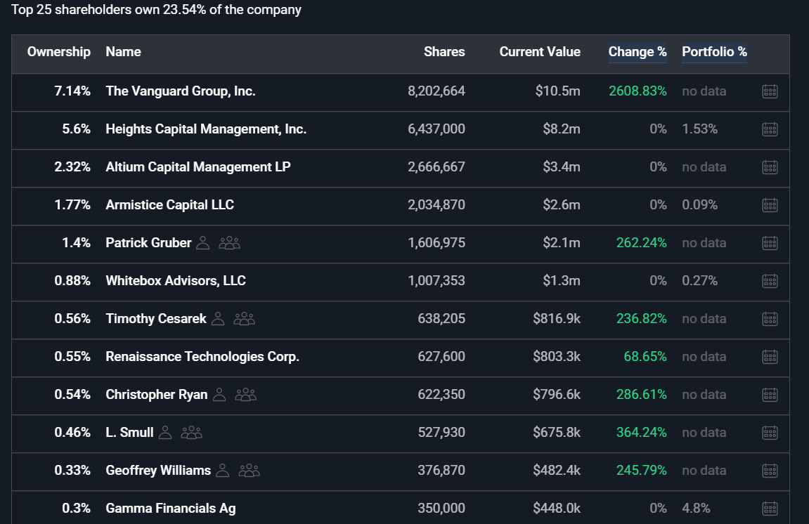 Boas deixo esta imagem esclarecedora da posição dos maiores acionistas da GEVO (incluindo o Board Menbers) que durante este ano aproveitaram para aumentar as posições na empresa. (% a verde)