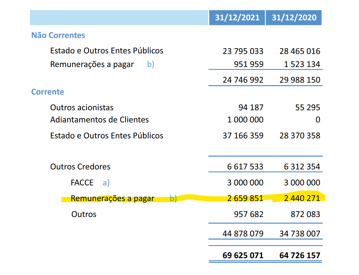 1) a Reditus a 31.12.2021 colocou como dívida corrente da dívida do Estado alvo de reestruturação cerca de 16,2 milhões (ou seja, dívida a pagar em 2022):