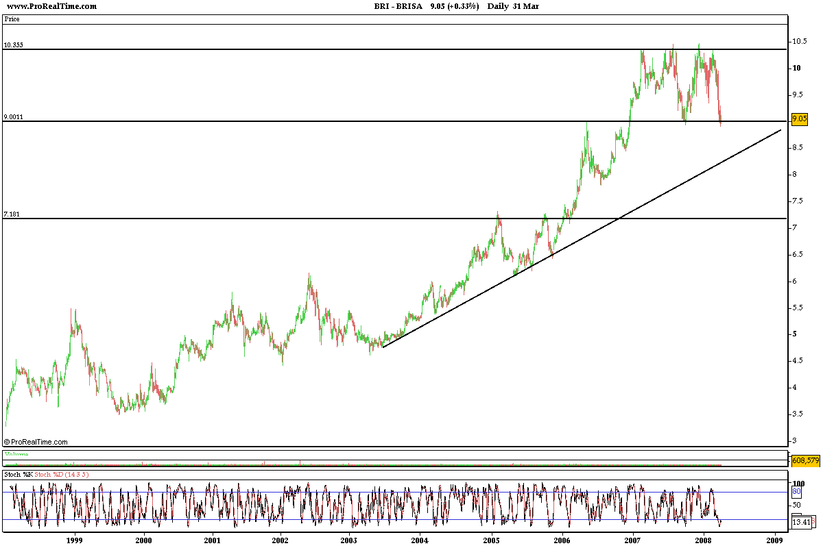 Além disso, os 10.40 são apenas uma referência, um target. Um trade baseado nestes pressupostos não precisa de ser fechado naquela zona de resistência (entretanto a LT vai subindo e vai servindo de trailing stop, ora se a Brisa mantiver a sua tendência de longo-prazo o trade pode vir a ser fechado acima desse valor e mantido por muitos meses).