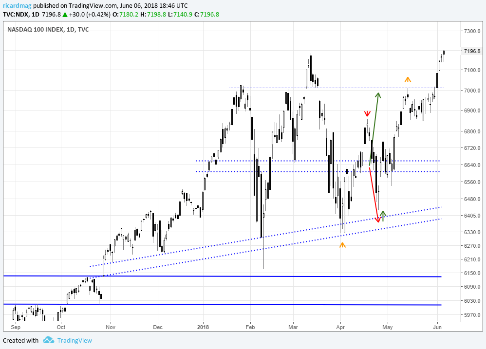 Continuo a achar que isto está esticadissimo e, se há coisa curiosa , é ver o NDX cair com velas verdes diarias com lower lows e lower highs, mas fazendo diárias verdes :shock: :-k :-k