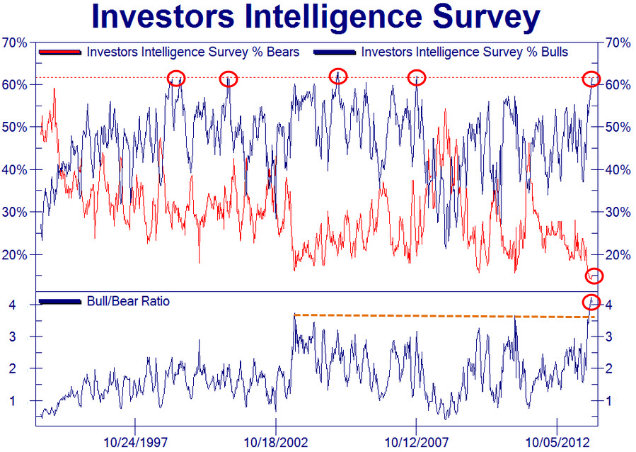 Humm, interessante... estes resultados não seriam relativamente expectáveis? Com os índices em máximos históricos, mas com muita especulação à mistura (pouco suportado no desenvolvimento da economia real), não será natural que os bulls se venham progressivamente a tornar bears, sugerindo uma reversão de ciclo no curto/médio prazo?