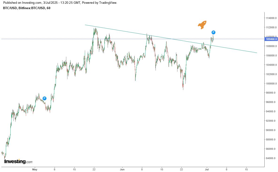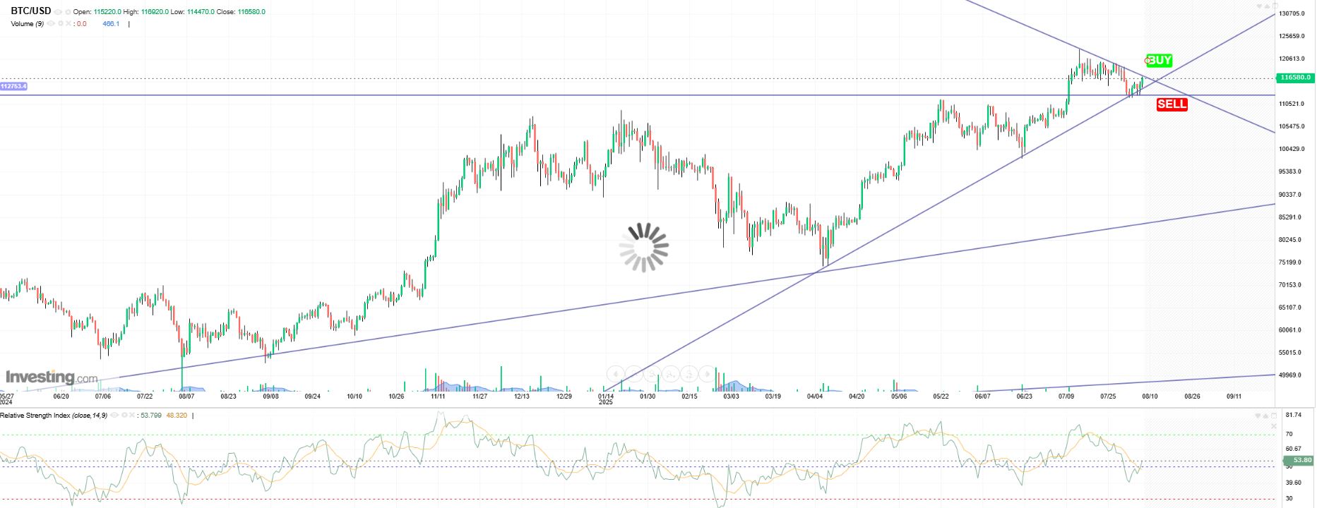 Sendo o bitcoin o normal é que vá para cima e agora é bom momento para comprar com um stop ajustado ao proximo suporte.