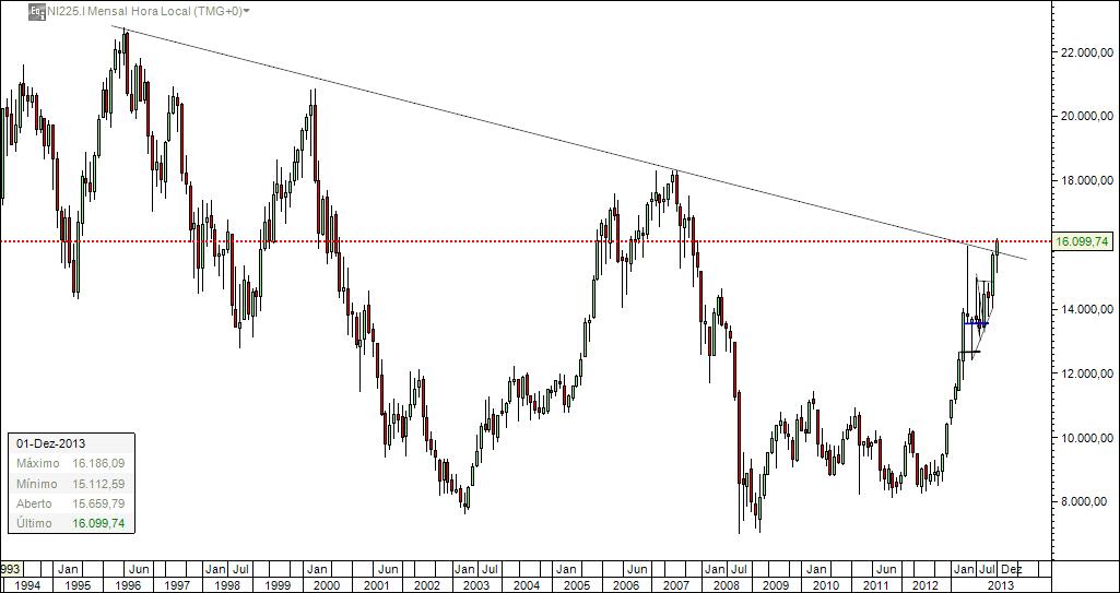 Há um mês coloquei a hipótese de o Nikkei estar a desenhar um triângulo ascendente.