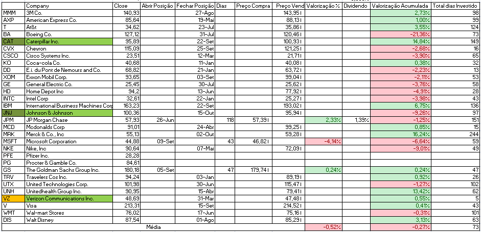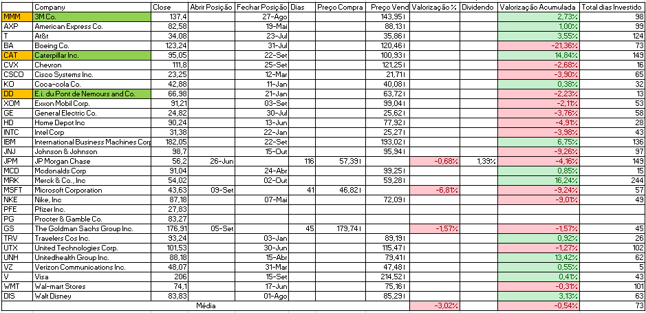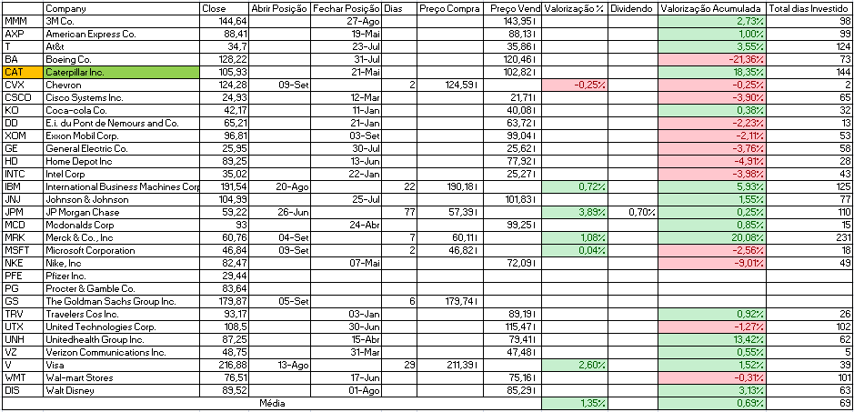 Para amanha temos a venda da Caterpillar Inc. e compra da Intel Corp.