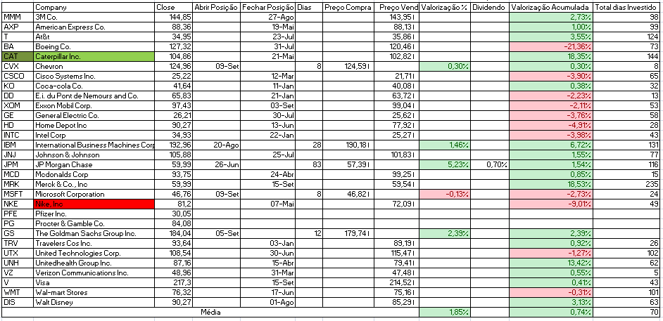 Para o último dia do Mês temos a compra da Intel e P&G.