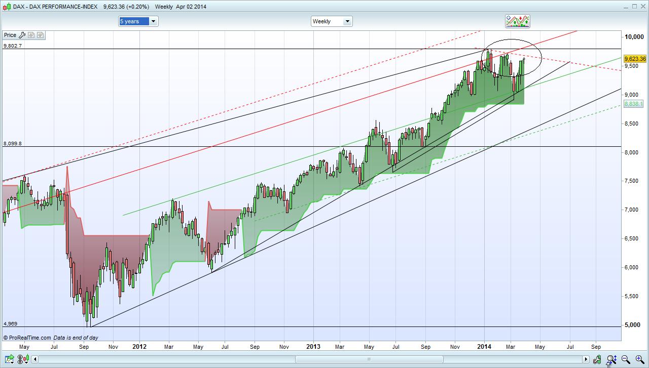 Por exemplo, vejamos aqui o Indice principal da Europa , o DAX . Dá vontade de meter ali um valeeeente curto , pah !