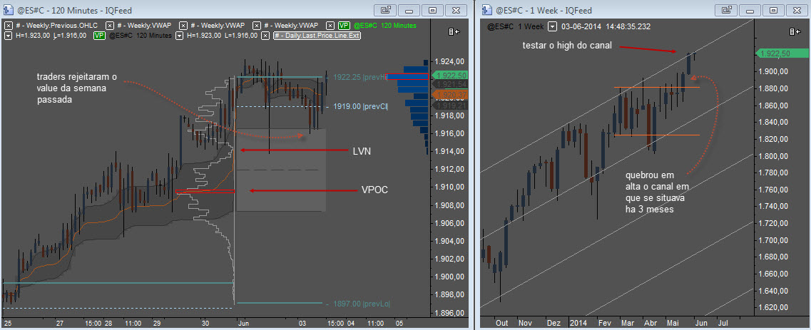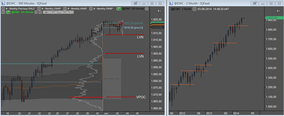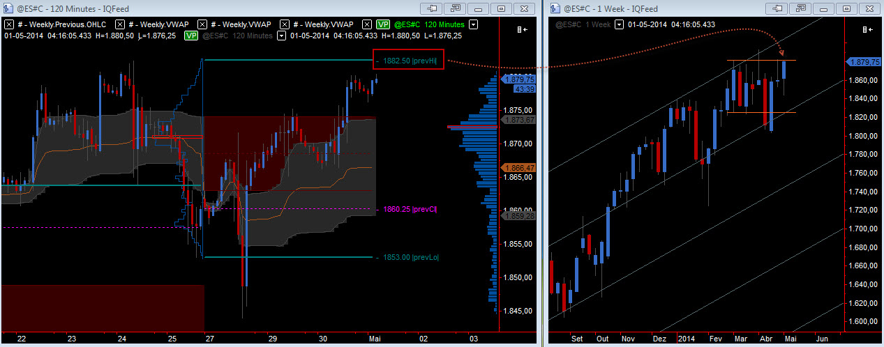 Um possivel problema será o facto de o VPOC do mês passado ter ficado nos 1868. O ES subiu dos 1868 aos 1920's sem o VPOC ter subido. Um claro sinal de fraqueza, buyers claramente a não participar em grande força à medida que os preços iam subindo.