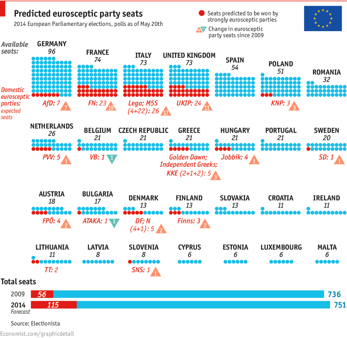 Deixo aqui uma referência àquela que parece ser a grande causa (se calhar é mesmo...) destas eleições, que é a importância que os anti europeistas vão ter no novo parlamento.