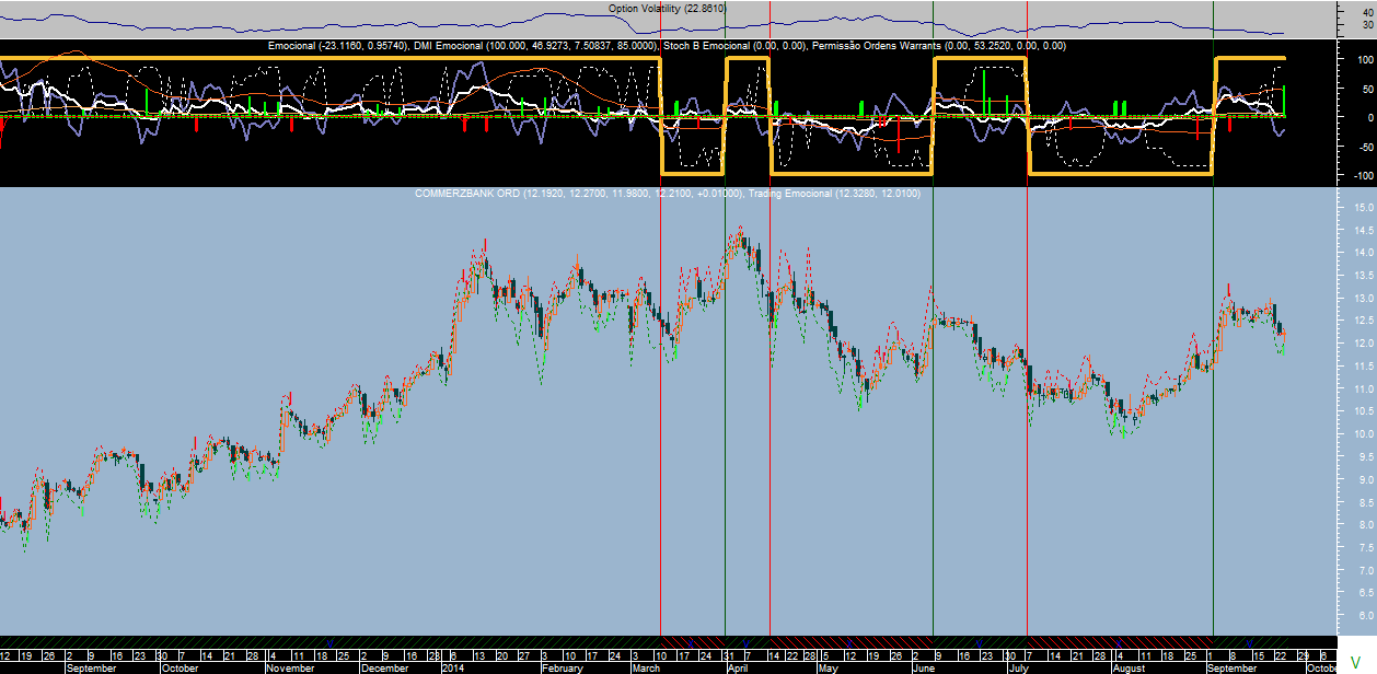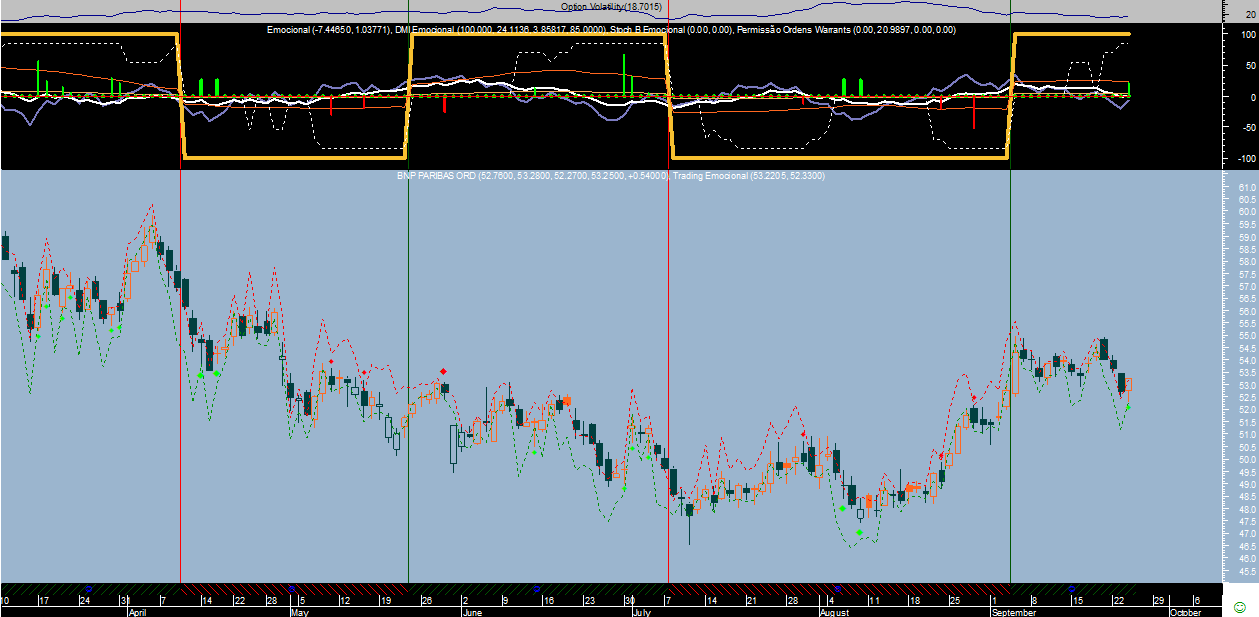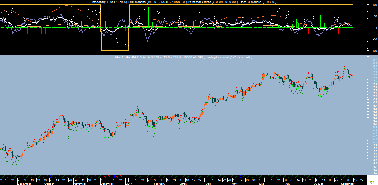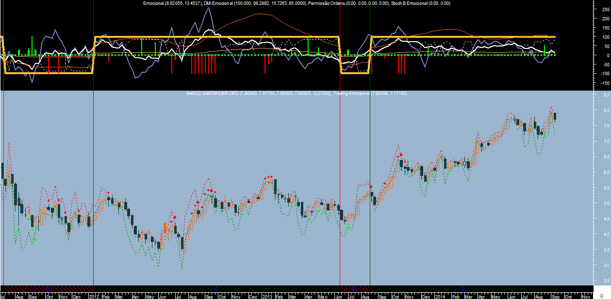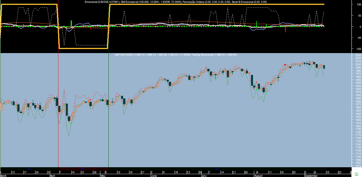 No caso do sistema “Emocional” a forma de calcular os sentidos predominantes do mercado tem a ver com os desequilíbrios emocionais que predispõem a maioria dos participantes a ter maior vontade de ficar comprados ou vendidos, ou seja, lida apenas com a medição das emoções predominantes de médio e longo prazo. Um método que reconheço ser pouco ortodoxo e que se afasta por completo dos tradicionais níveis de ressalto dos mercados que definem posteriormente os futuros suportes e resistências.