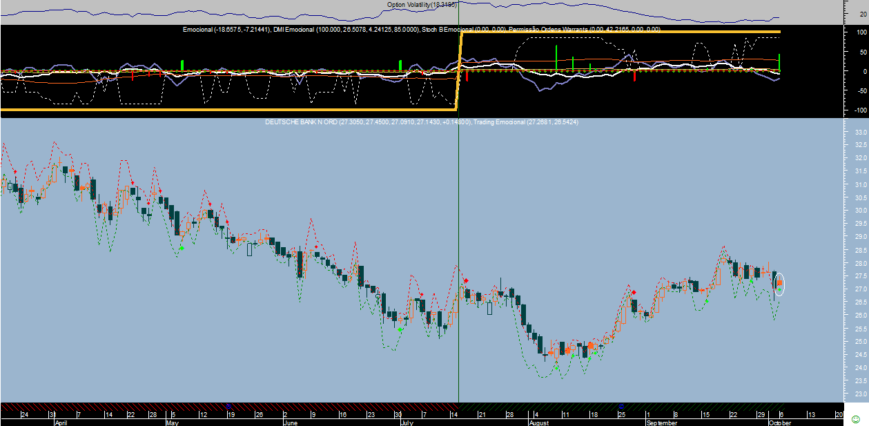 Fica no entanto o gráfico para efeitos de curiosidade, não sem antes referir que a tendência no Deutsche Bank se encontra ascendente na escala diária e descendente na semanal, evidentemente na ótica do sistema de trading.