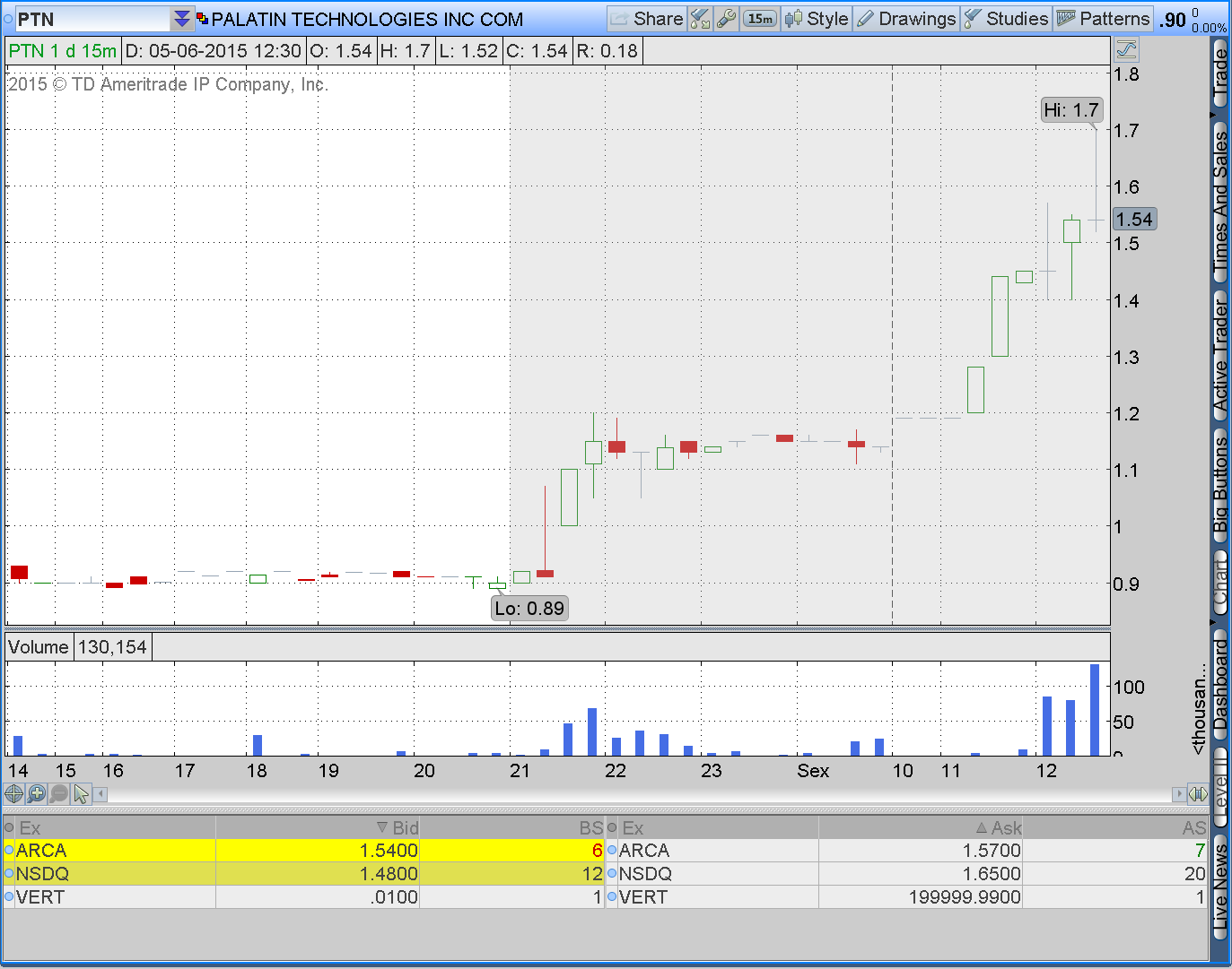 Caro FDPC, pelo que tenho lido aqui, a tua evolução no day trading e noções a aplicar tem sido notável e desenvolveste uma abordagem muito agressiva ao trading. Estamos todos a aprender coisas novas. O padrão DSD desconhecia, e desconhecia o seu aproveitamento bear de curto prazo. A TD Ameritrade é do nível da E-trade, e são ambas adequadas ao day trading com gráficos e informação do melhor que conheço.