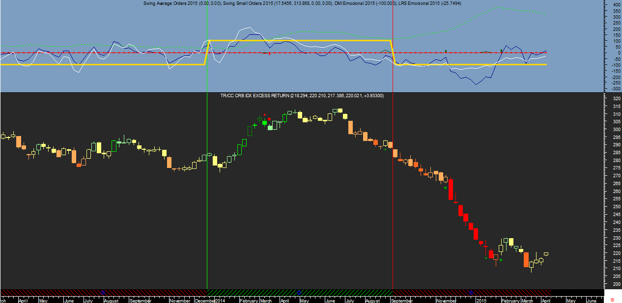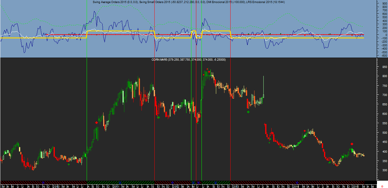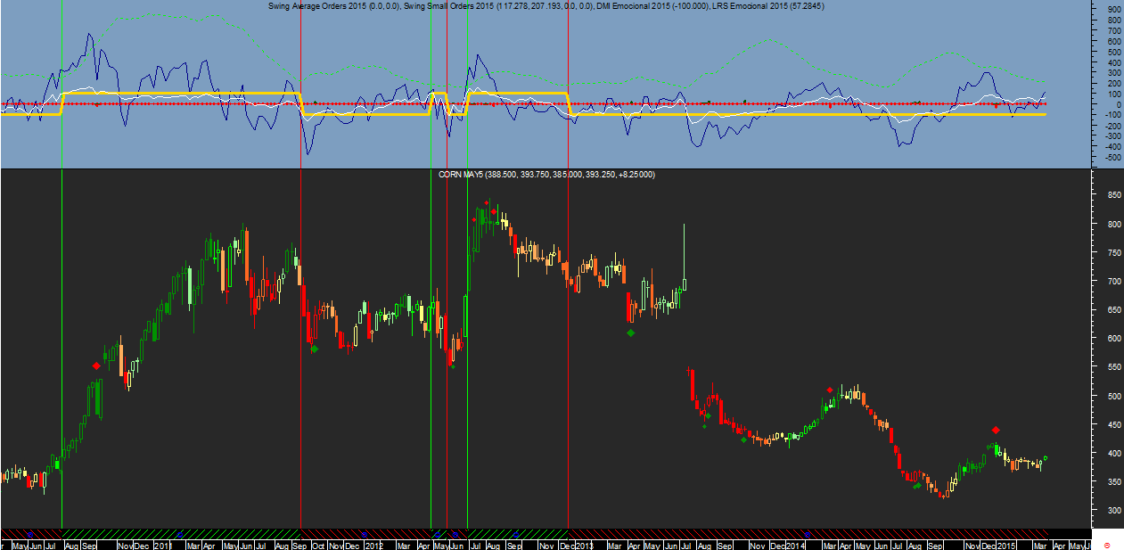Aliás precisamente na última sessão da semana o indicador que determina a tendência, o “Rating Emocional de longo prazo” de cor branca no gráfico diário voltou a reforçar a força da tendência negativa à data atual, ao registar um valor de -119, claramente abaixo dos -100 pontos, registando uma fraqueza técnica bem marcante no Corn apesar de estar ainda e para já a perder dinheiro na trade.