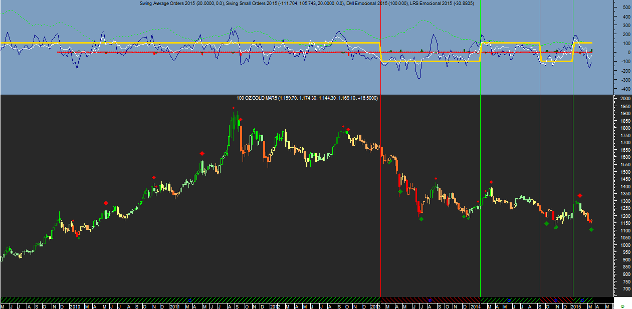 Voltando às considerações técnicas, o indicador tendencial do “Rating Emocional de longo prazo” do Ouro na escala diária marca nesta altura -62 pontos, logo em terreno ainda claramente negativo, o que significa que estamos ainda bem longe de uma inversão para climas emocionais que sejam francamente positivos, acima dos +100 pontos, os únicos onde se poderá eventualmente dar uma viragem que proporcione a tomada de posições compradoras no Ouro.