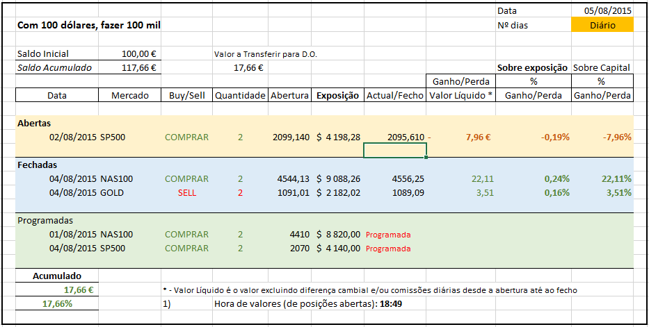 Nota: Os valores das posições abertas, foram preenchidos, com o mercado de futuros a mexer pelas 21:16.