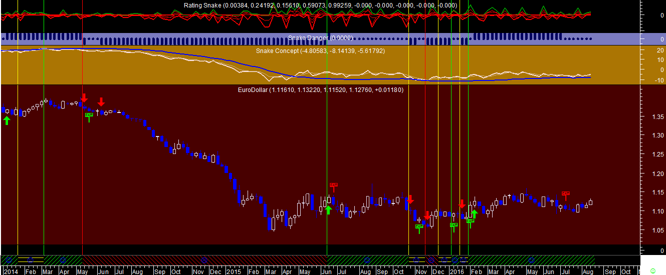 - Sistema “Cobra” original ou componente tendencial: comprado, neutro ou vendido, consoante a posiçao maioritária das 2 escalas temporais analisadas, no caso em concreto a diária e a semanal.