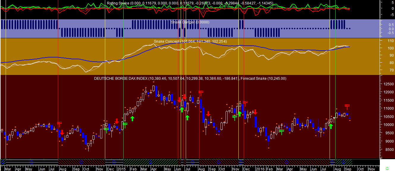 Já agora uma nota curiosa sobre aqueles pontos laranjas no gráfico diário do DAX, simplesmente representam em cada sessao a previsao do fecho para a sessao seguinte. No caso do DAX o programa prevê assim para amanha um fecho nos 10.357 pontos, uma perda de 30 pontos no índice.