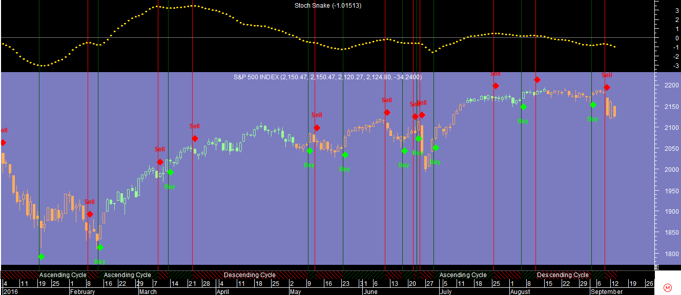 Conforme referi mais atrás as férias acabaram por ser muito proveitosas do ponto de vista criativo, uma vez que acabei por introduzir no sistema “Cobra” um complemento importante ao principal componente tendencial que lhe faltava, mais propriamente uma componente estocástica ou oscilatória.