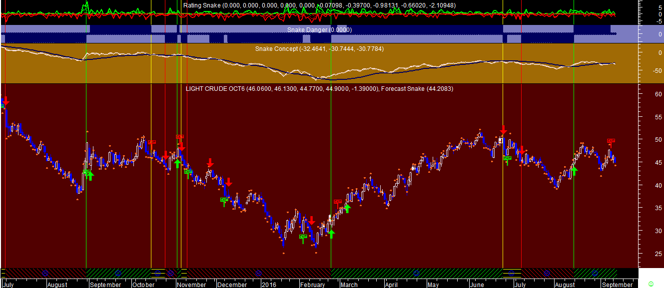 Hoje, finalmente ao fim de vários dias sem alterações na carteira, a “Cobra” resolveu voltar a assumir posições longas no Crude Oil quando o gráfico diário assinalou uma alteração para compra, a juntar ao mesmo sinal que se manteve sempre inalterado na escala semanal.