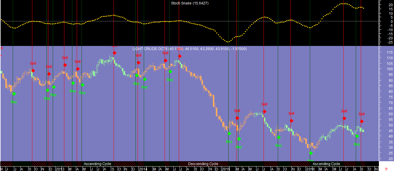 Trata-se do Crude Oil que vai ser despromovido, onde através duma mudança no sinal do gráfico diário tendencial obriga a que:
