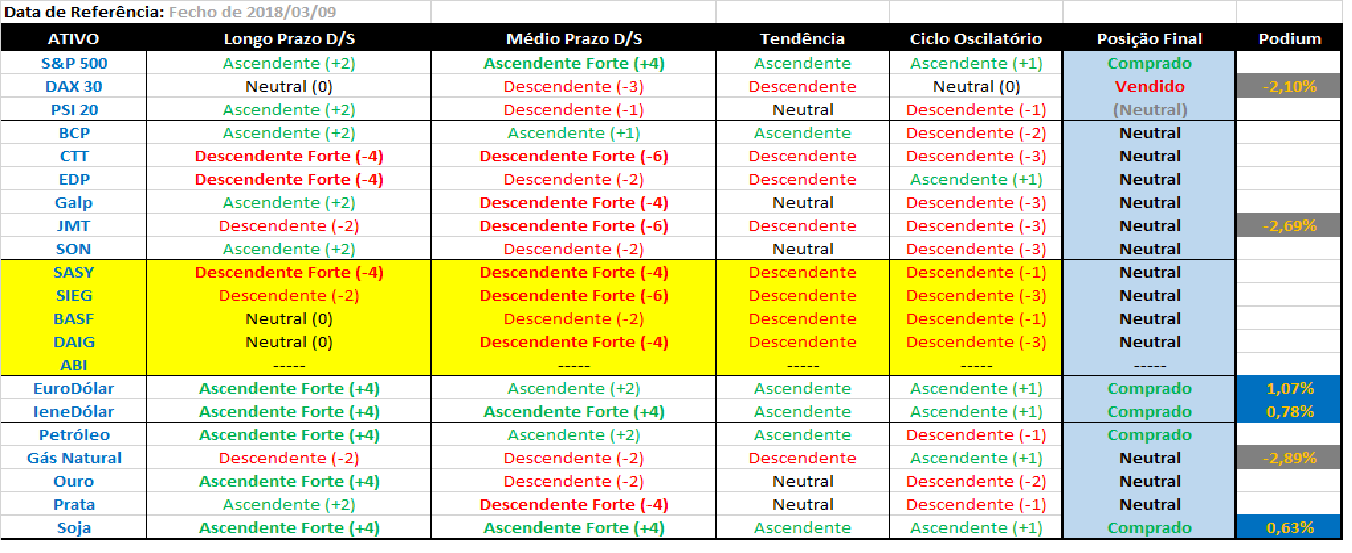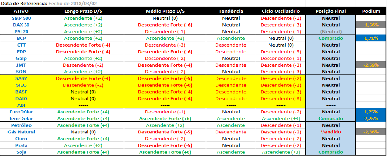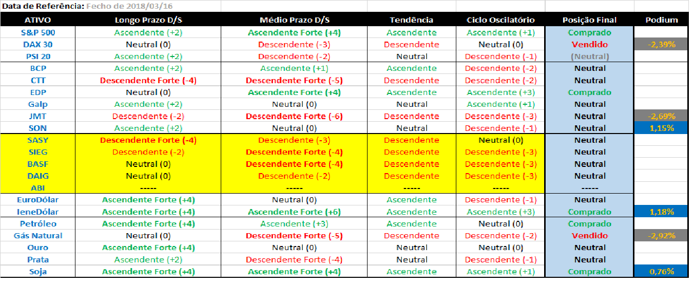Assim parece, a tendência de longo prazo que se mantém ascendente no S&P impede a carteira de assumir posiçöes curtas.