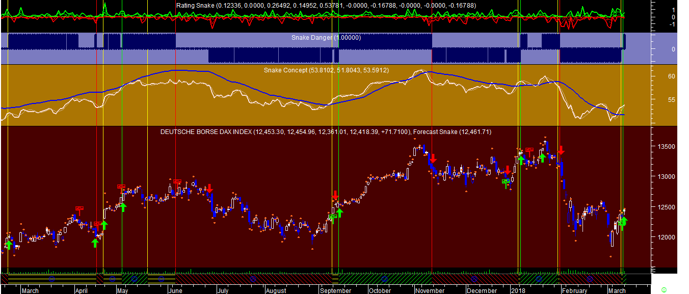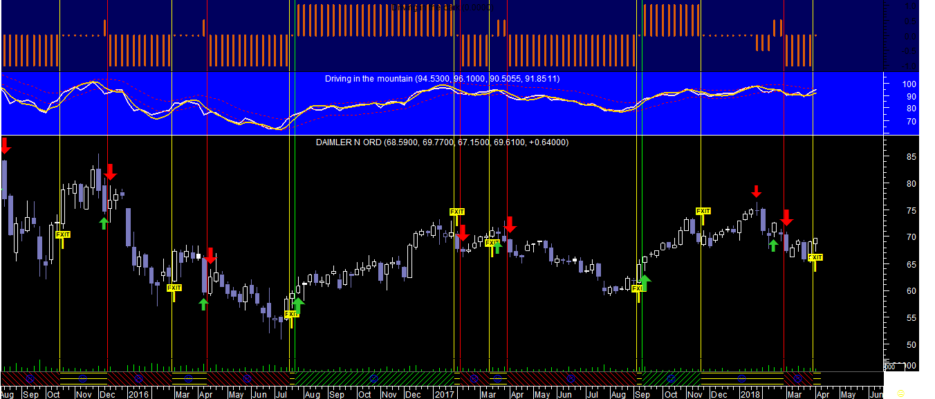 Gráficos de hoje no DAX e na Daimler em sistemas de trading diferentes apresentam uma pequena curiosidade de aparecerem com uns sinais de compra apesar do castigo infligido ao setor acionista, insinuando que a correçäo de curto prazo terá ido um pouco longe de mais. No entanto os sinais de compra säo ainda insuficientes para compensar a negatividade do conjunto dos restantes sistemas que mantêm no geral um a panorâmica pouco risonha.