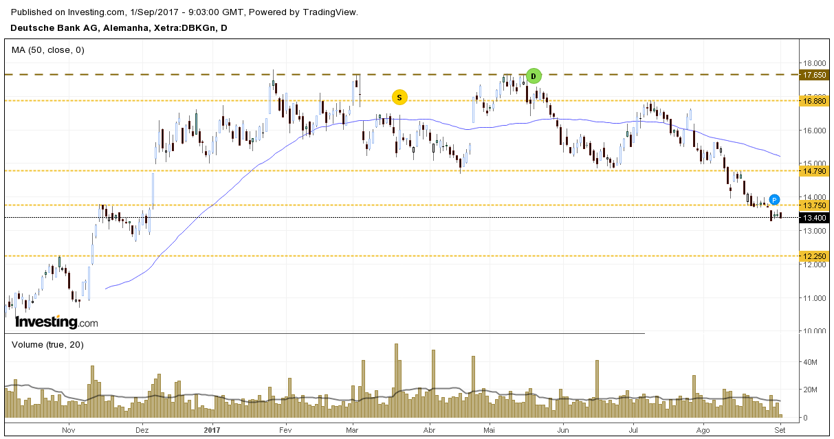 O novo mínimo de ontem foi um sinal muito negativo. Pensava que finalmente o Deutsche Bank estava no caminho para resolver os problemas internos mas afinal o preço vem demonstrar o contrário, não só não resolveu como parece estar a agrava-los.