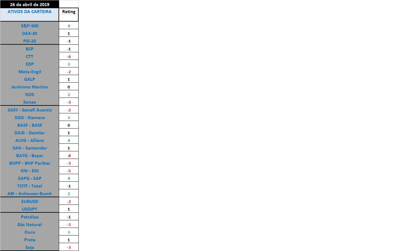 Nos ratings das açoes tugas a EDP, comprada no passado dia 11 de fevereiro, bate o record deste ano 2019 com o valor positivo mais elevado alcançado até agora.