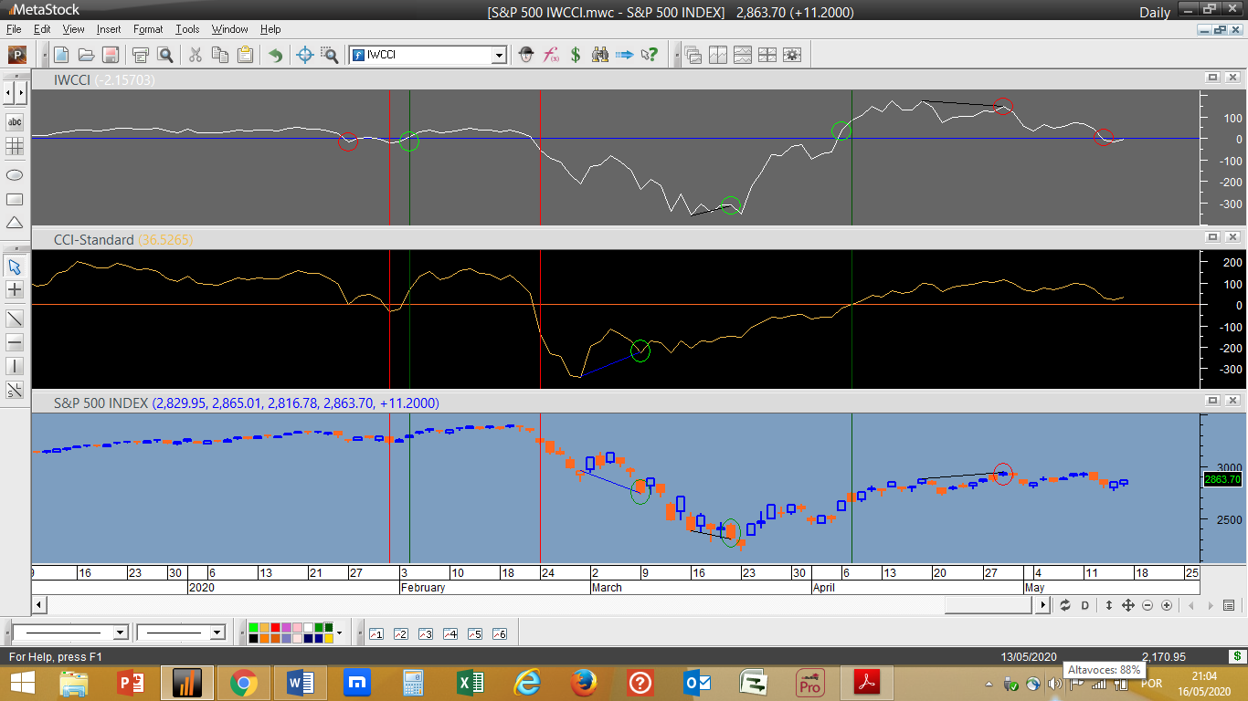 Para finalizar, a 1ª imagem de baixo trata dum gráfico interessante que convém ser bem interiorizado. Foi extraído da publicação de 11 de maio do Financial Times, que mostra a velocidade incrível de recuperação deste bear market da pandemia do Covid-19. Segundo os especialistas auscultados na notícia esta aparência de recuperação ao sprint ou com uma velocidade estonteante a caminho do topo nunca foi a regra! De acordo com uma amostra de opiniões dos experts consultados, continuando o artigo, o S&P-500 deverá terminar o ano cerca dos 2700 pontos no cenário de intervalo central médio mais conservador mas outros intervenientes pensam que esta recuperação explosiva não tem precedentes devido às intervenções radicais dos bancos centrais, talvez um pouco na senda dos cenários aqui já apontados a propósito do rally que dura há perto de dois meses nos mercados norte-americanos. De todas as formas o que me chamou mais a atenção, num gráfico que regista a condensação de todos os bear markets desde 1870, foi que as recuperações mensais são sempre a subir, logo a seguir ao registo do mínimo de cada crise. Nem lhes dão tempo para por vezes estabilizarem ou produzirem pequenas correcções intermitentes na escala mensal, poderão quanto muito ser mais ou menos inclinadas mas as recuperações não deixam todas de ser uns “sky rockets” sem tempo para respirar em níveis intermédios. Um padrão a dar que pensar! Evidentemente este cenário tem de ser visto na perspectiva de que os mínimos de março não voltarão a ser revisitados e ultrapassados em baixa.