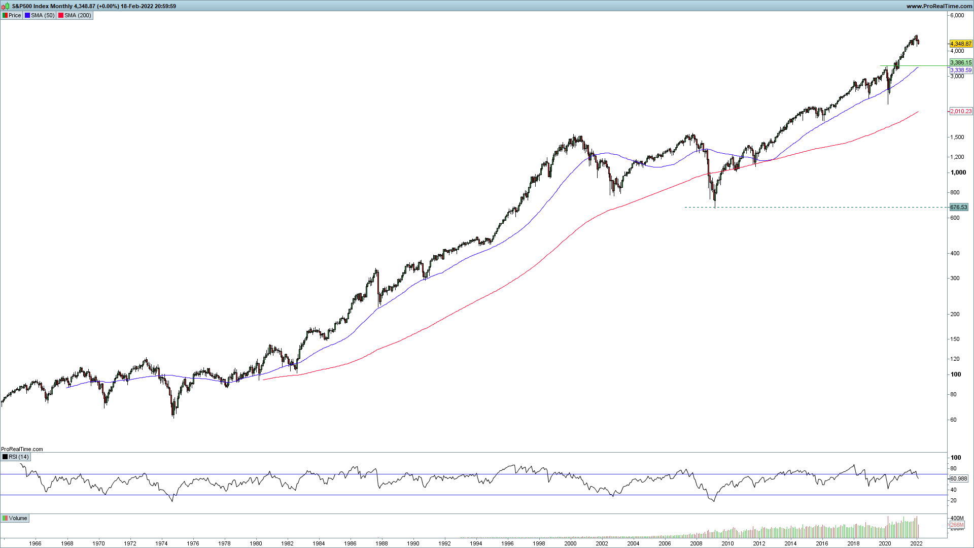 Quanto aos mercados financeiros, e para os que choram que estes valores são insustentáveis, que vem aí o fim do mundo e isto não pode subir sempre, deixo-te um gráfico do S&P com os últimos 60~ anos onde tiveste um pouco de tudo a nível socioeconómico.