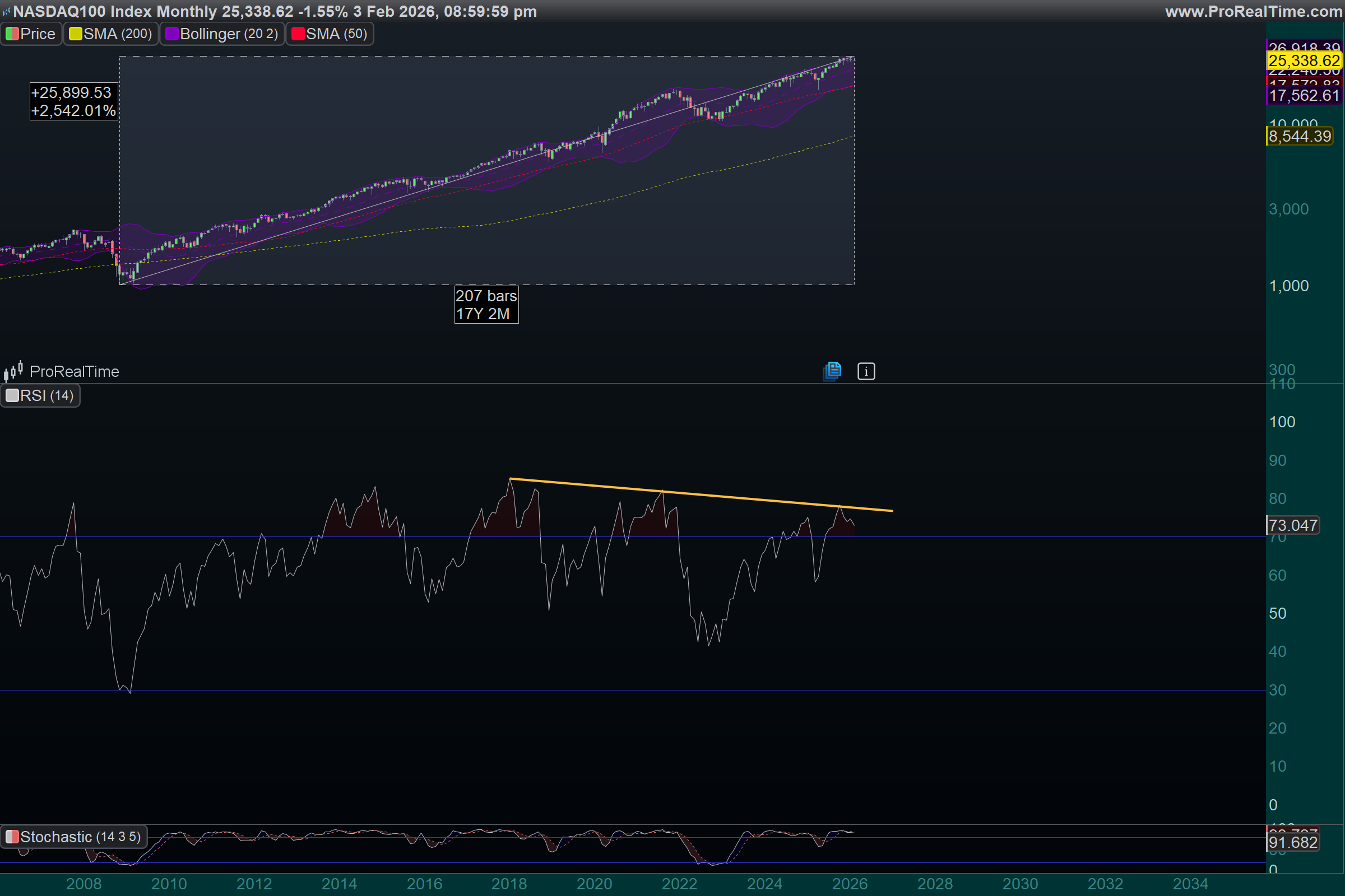 Desde 2018 está a formar uma divergência no RSI mensal.