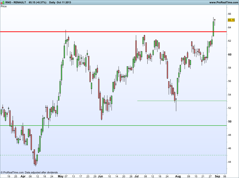 Hoje o CAC40 alcançou (até ao momento) o seu máximo anual e a Renault abriu nos 60.3€ e fechou praticamente no fecho de sexta-feira, nos 59,55€. Que conclusões se podem retirar deste movimento? Será prematuro dizer o quer que seja, para além do movimento em si mesmo?
