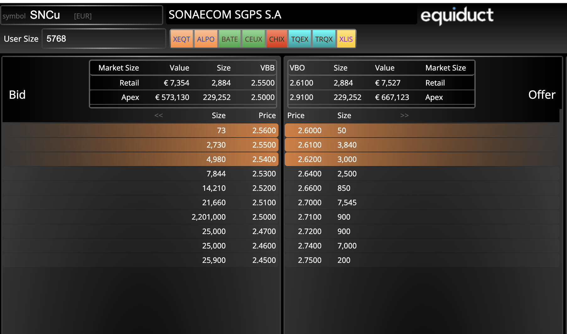 Só consigo ver estas posições, por isso não sei o que está a: 2,51, e, acredito que a 2,50 estarão alguns milhões a comprar.