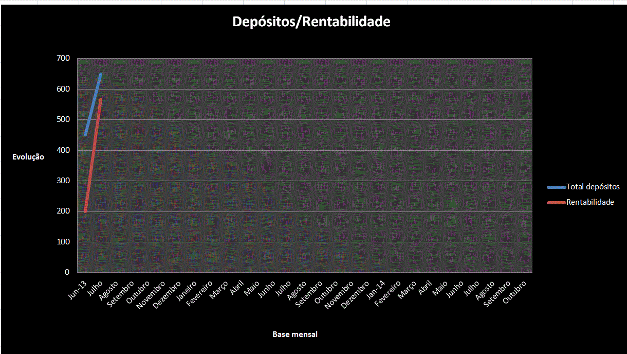 No início, para um total de depósitos de € 650,00, a rentabilidade chegou a descer para € 200,00, ou seja, em relação ao montante depositado, uma perda de € 450,00!