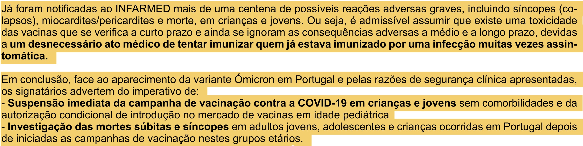 Nota que são 26 subscritores, nem todos médicos. Francamente, considero isto desinformação. Sem números e estatísticas, isto é simplesmente espalhar desinformação.