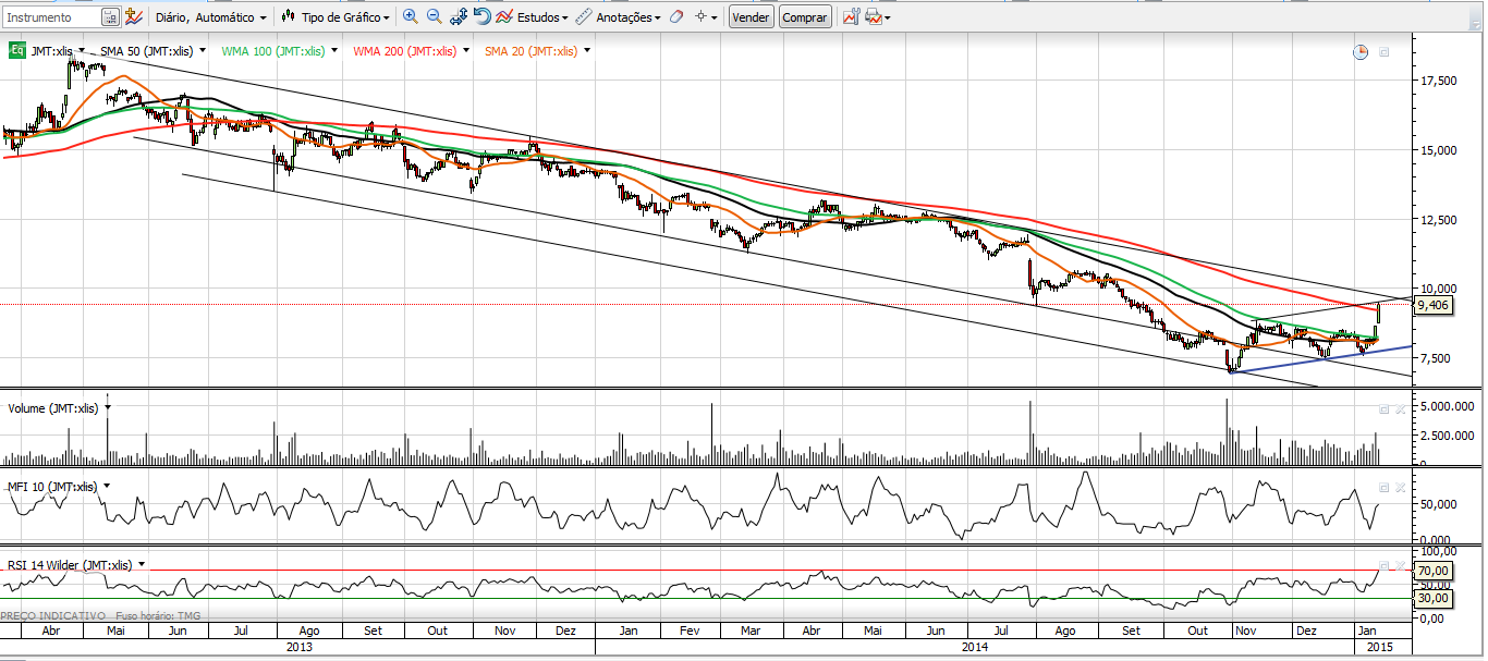 NA verdade o JM já melhorou desde novembro, não se trata de simpatizar ou não ( pois por pensar assim já tive dissabores nos mercados, felizmente hoje não penso assim, e espero nunca mais pensar assim...mas quando elas inverter a tendência, ai sim passo a "simpatizar", mas se correr mal, deixo outra vez "simpatizar" ), pois se começássemos a simpatizar nela neste Bear market era muito mau, e não devemos tentar descobrir fundos.De referir que não tenho nem nunca tive JM em carteira, mas com este possível mini H&S de fundo, caso seja activo na rutura da Neckline, ai sim pondero uma entrada, pois a projecção da mesma (target) é interessante