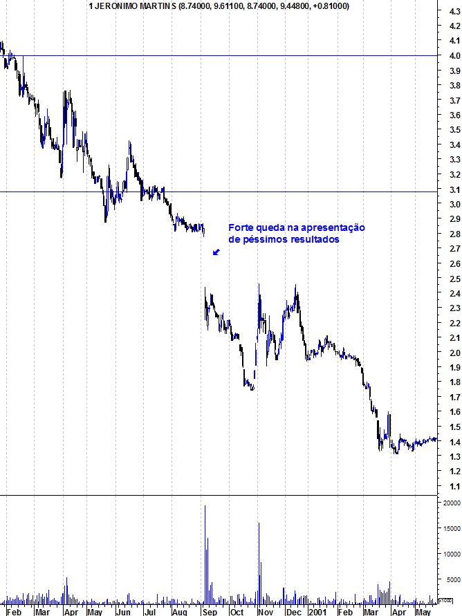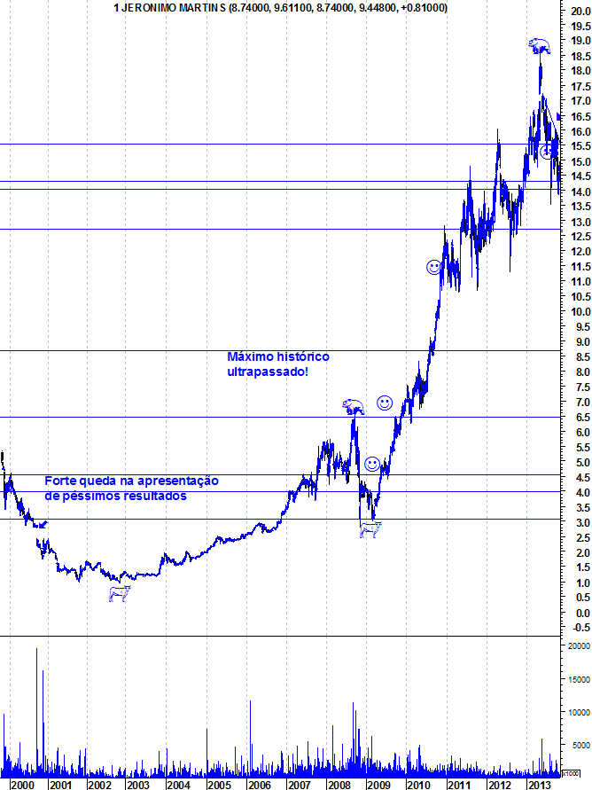 Para que não restem dúvidas, o que eu disse foi que uma das maiores quedas da JM ocorreu em 2000, no dia seguinte à apresentação de resultados decepcionantes, fruto da internacionalização da empresa para a Polónia. E o que tenho dito também é que foi essa internacionalização que permitiu, na década seguinte, que a JM fosse a estrela da Bolsa portuguesa, subindo mesmo quando a praça portuguesa estava em "Bear Markets".