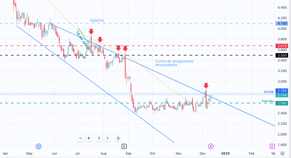 Penso que a compra de ações proprias só avançaria se houvesse perigo da cotação resvalar de 2,50. Por agora a reação à base está a fazer-se de modo interessante e vamos testar o topo de curto prazo, nos 2.80.