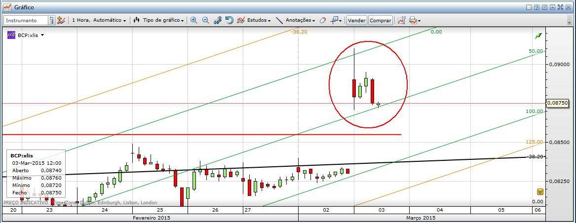 Se esta zona dos 8,7 (a linha verde onde a cotação está) não aguentar fecho, caso contrario vou ficar dentro a ver até onde vai.