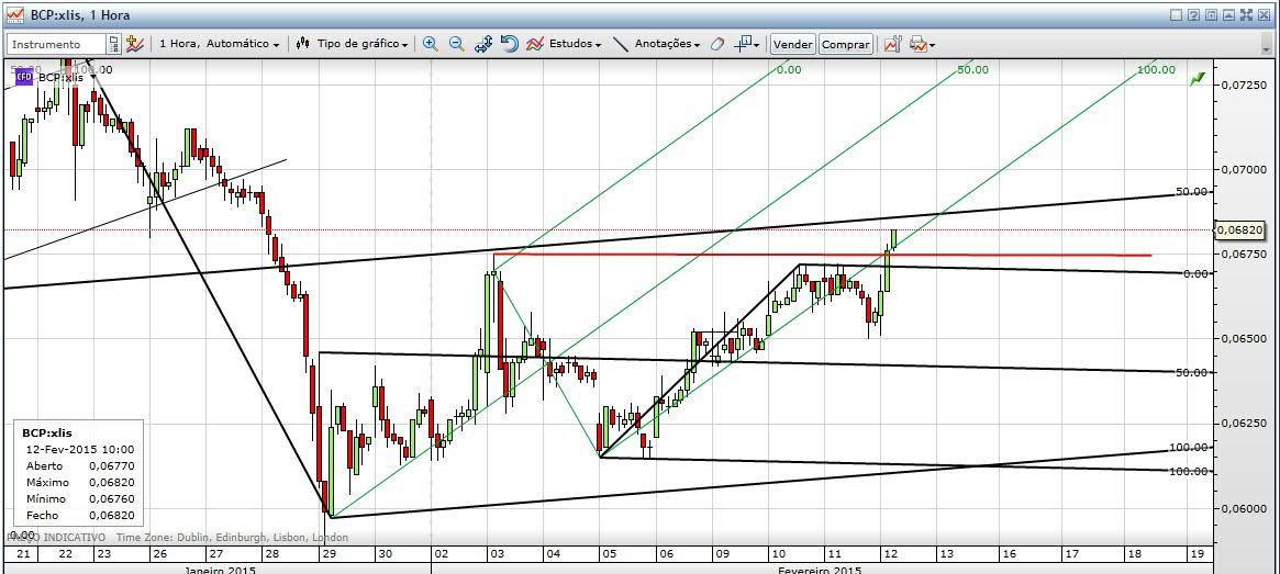 No gráfico de 1 hora finalmente passou os 6,75 centimos que estavam a ser uma barreira.