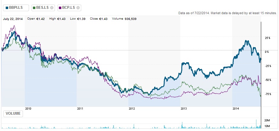 Performance em bolsa BPI, BES, BCP nos últimos 5 anos