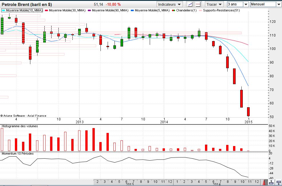 O petróleo fugiu verdadeiramente da zona de 50 - 55 USD, caminhando a passos largos para os 45 e, quem sabe, depois atacar os 4= USD.