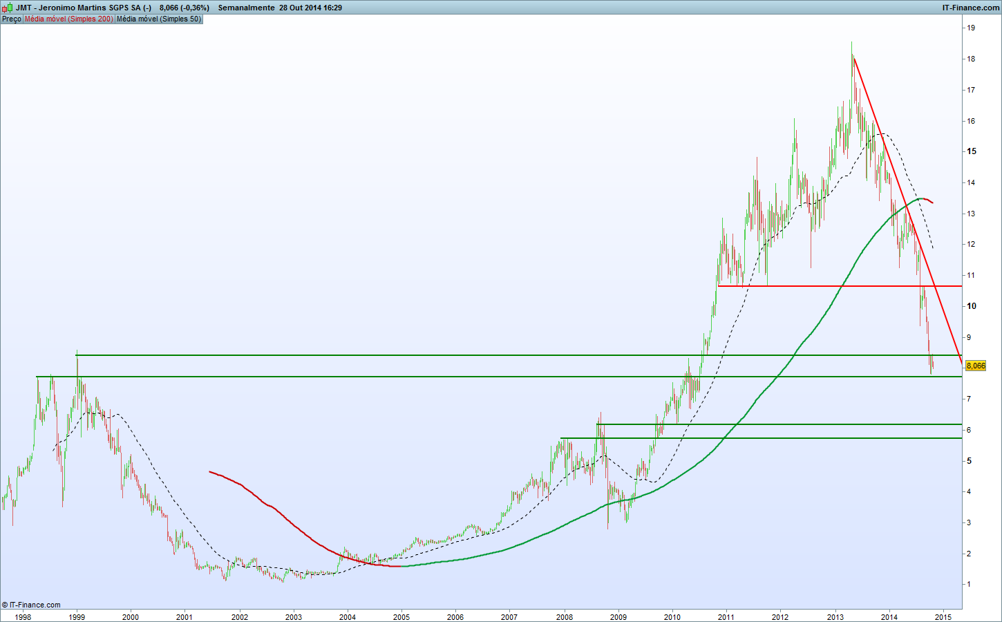 jotas007 Escreveu:TheMolle Escreveu:Para ver a JM a "renascer das cinzas" ou a inverter a tendência dominantemente descendente é quando a virmos a quebrar em alta as suas resistências, e não a chegar aos seus suportes.