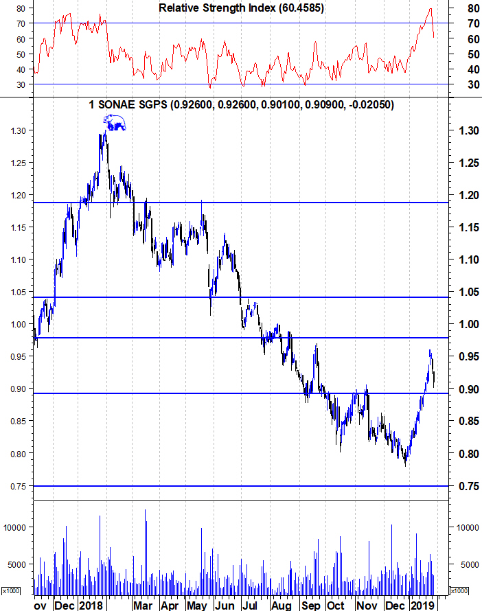 A Sonae está hoje a retrair pelo segundo dia consecutivo. Era importante para os touros que esta correcção parasse na zona dos 0,89, sinal de quebra de resistência e de reteste com sucesso da zona de resistência quebrada.