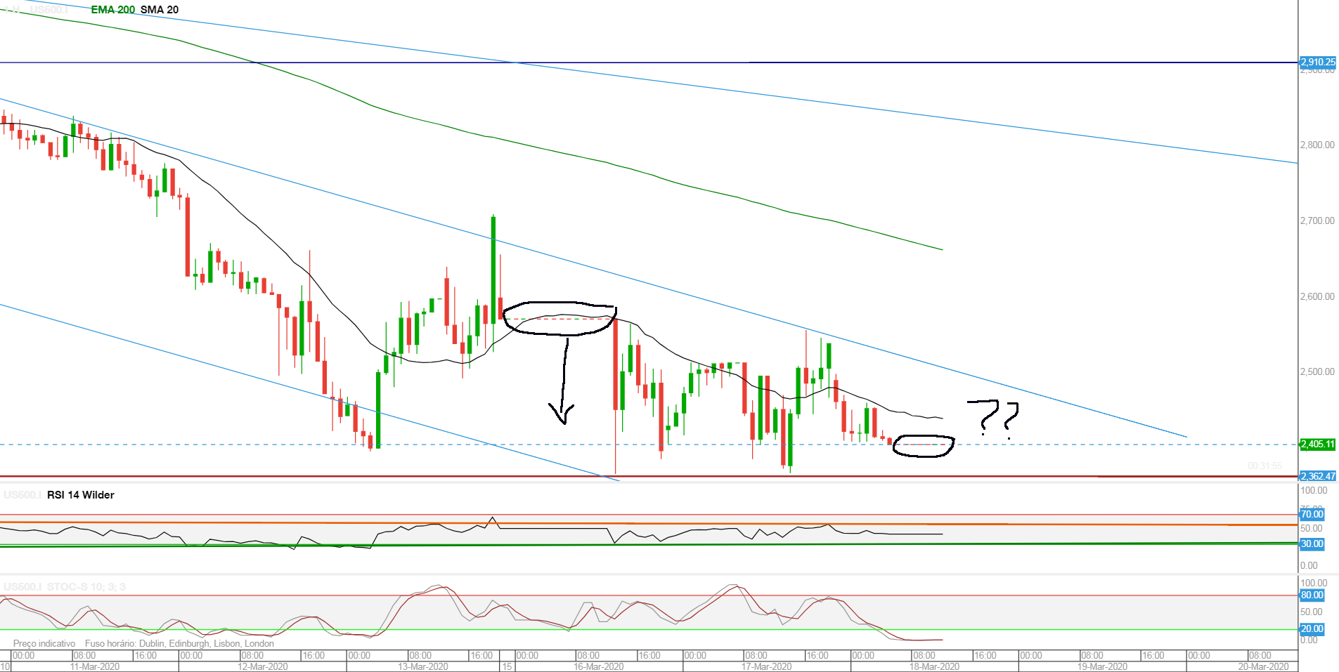 Que tenha alguma importância a defesa dos níveis atuais ainda acredito... mas acho que estamos a viver uma situação tão excecional que tenho sérias dúvidas que os mercados venham a inverter em algum nível importante tecnicamente. Mas estaremos cá para ver! Não me importava nada que não caissem mais, que segurassem os níveis atuais, não que tenha interesse financeiro nisso, mas antes porque isso indicaria que a situação da pandemia não se agravaria muito mais!